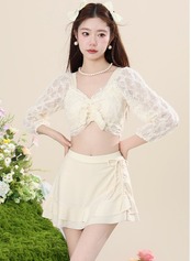 裾フリルと七分袖が可愛らしいレディース水着が登場しました。セパレートタイプで、お好きなボトムスと組み合わせることができるので、自分だけのオリジナルコーディネートを楽しめます。エレガントなデザインでありながら、フェミニンな雰囲気も漂わせることができる水着です。学生から大人まで幅広い年齢層の方におすすめです。
