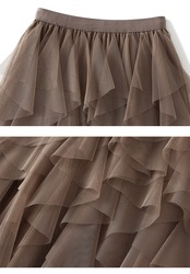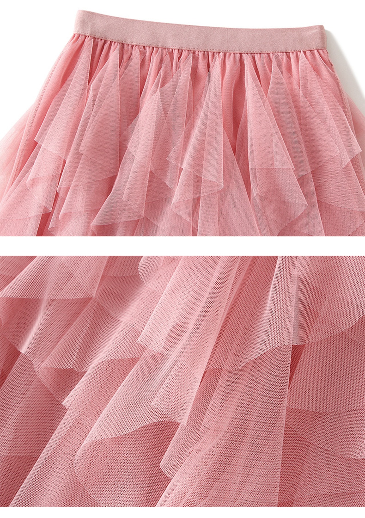 柔らかなメッシュ素材が上品な透け感を演出し、軽やかな動きを引き立てます。ウエスト部分は伸縮性のある仕様で、快適な着心地を実現。タイトなトップスと合わせてスタイリッシュにも、ボリュームのあるトップスと合わせて可愛らしさをプラスしても◎。