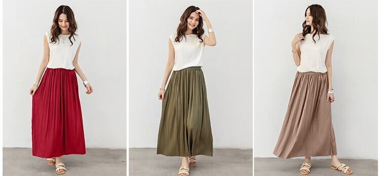華やかで女性らしい印象を演出するプリーツスカートが登場しました。マキシ丈のロングスカートは、上品な雰囲気と大人可愛いスタイルを叶えます。オフィスやデート、パーティーなど様々なシーンで活躍するアイテムです。