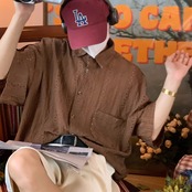 ブラウス トップス レギュラーカラー 半袖 パンチングレース 透け感 メンズライク ドロップショルダー ビッグシルエット タック パフスリーブ 襟コンシャス ドロップショルダー パフスリーブ プルオーバー レトロ 半袖 M L XL コーヒー オフホワイト 大人可愛い シンプル 上品 お洒落 こなれ感 無地 10代 20代 30代 40代 オフィス ビジネス OL 通勤 学生 通学 デート お出かけ 休日 イベント デイリー 普段使い | GVON ファッションショップ