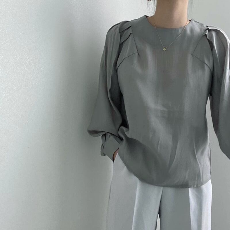ブラウス トップス シフォン クルーネック パフスリーブ プルオーバー タック パワーショルダー プリーツ 長袖 大人可愛い シンプル 上品 お洒落 こなれ感 無地 10代 20代 30代 40代 オフィス ビジネス OL 通勤 学生 通学 デート お出かけ 休日 イベント デイリー 普段使い S M L XL 2XL グレー ホワイト ブラック | GVON ファッションショップ