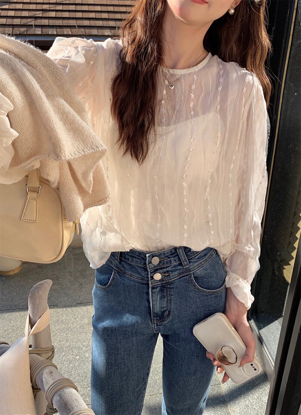 レイヤードスタイルに最適なストライプパターン入りシースルーブラウストップスが登場しました!