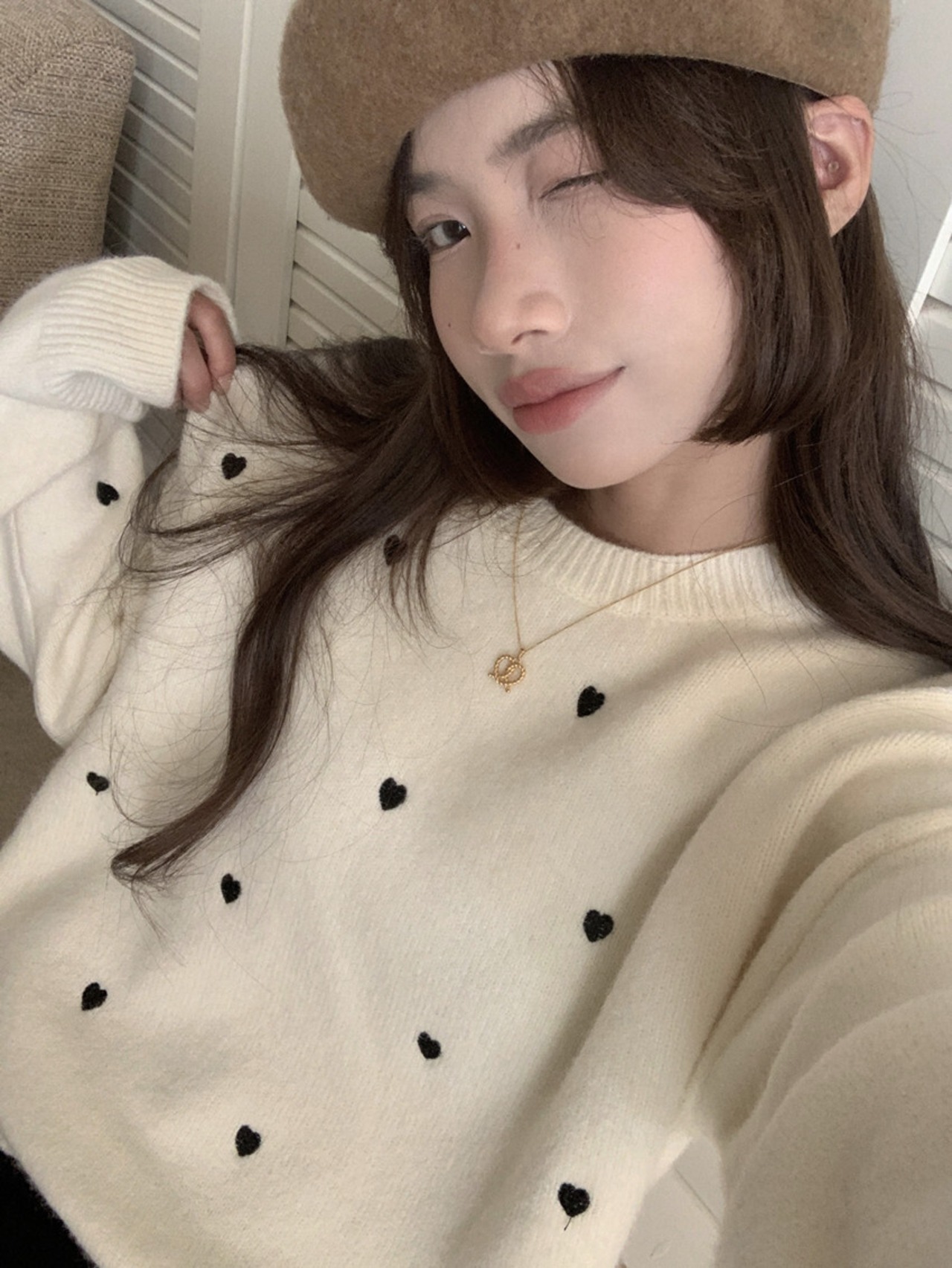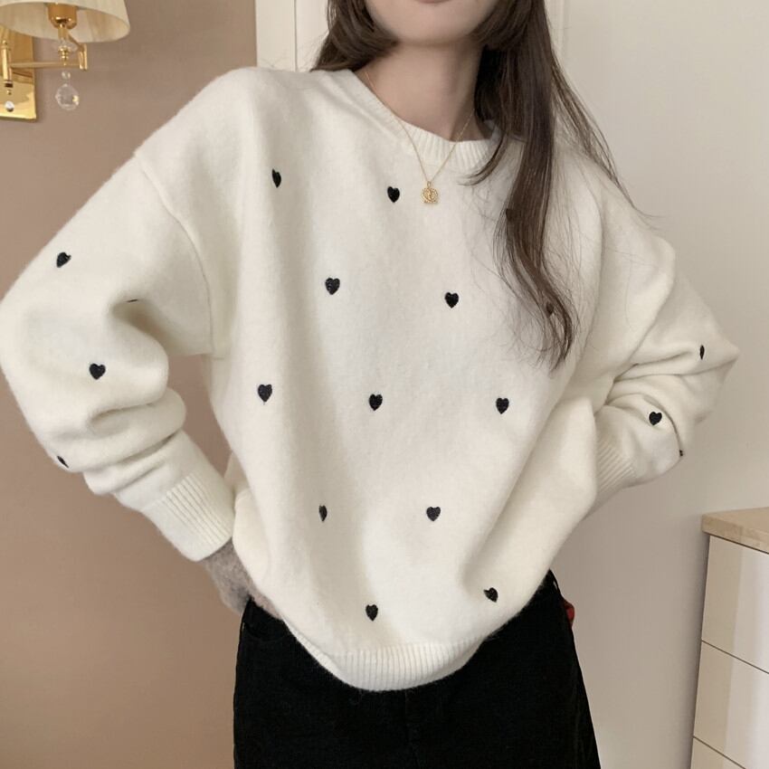 プチハート刺繍のドットが可愛いビッグシルエットセーターです。