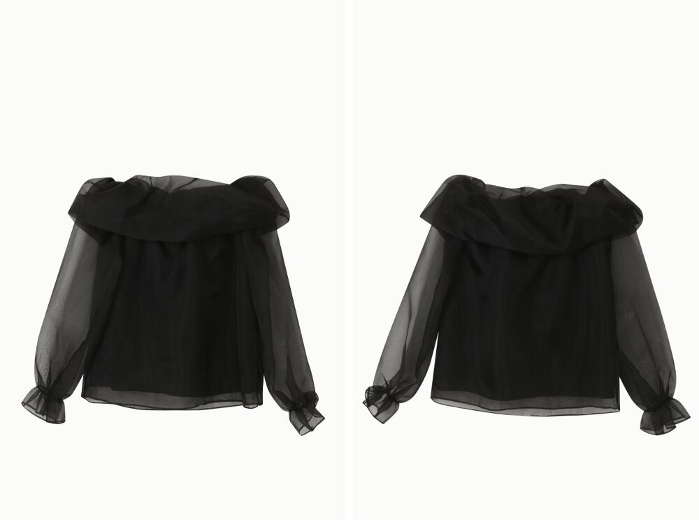 ブラウス トップス シフォン オフショルダー チュール ギャザー パフスリーブ フリル キャンディースリーブ プルオーバー 透け感 シアー シャーリング ふわふわ 長袖 バルーンスリーブ S M L XL 大人可愛い シンプル 上品 お洒落 こなれ感 無地 10代 20代 30代 40代 オフィス ビジネス OL 通勤 学生 通学 デート お出かけ 休日 イベント デイリー 普段使い アプリコット ブラック | GVON ファッションショップ